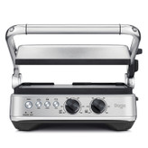 وقتی به این گریل از برند سیج نگاه میکنید دو دکمه چرخشی مشاهده میکنید که برای کنترل صفحه گریل بالایی و پایینی استفاده میشود. همچنین دکمه های روشن و خاموش، پخت ساندویچ، استیک و پنینی را هم میتوان روی بدنه محصول مشاهده نمود.