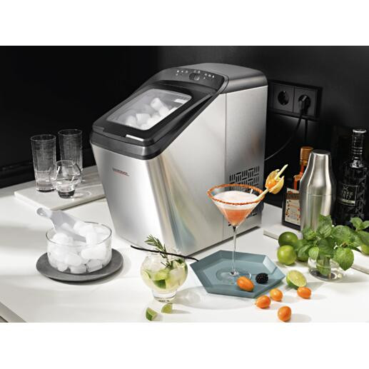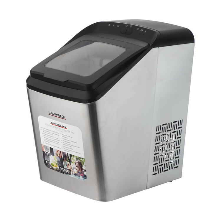 کار با یخ ساز gastroback 41143 bartender pro بسیار ساده بوده و بروری بدنه تنظیمات آن با دکمه های روشن / خاموش، انتخاب اندازه و چراغ های نشانگر LED برای مخزن آب و ظرف مکعب یخ محقق می گردد.