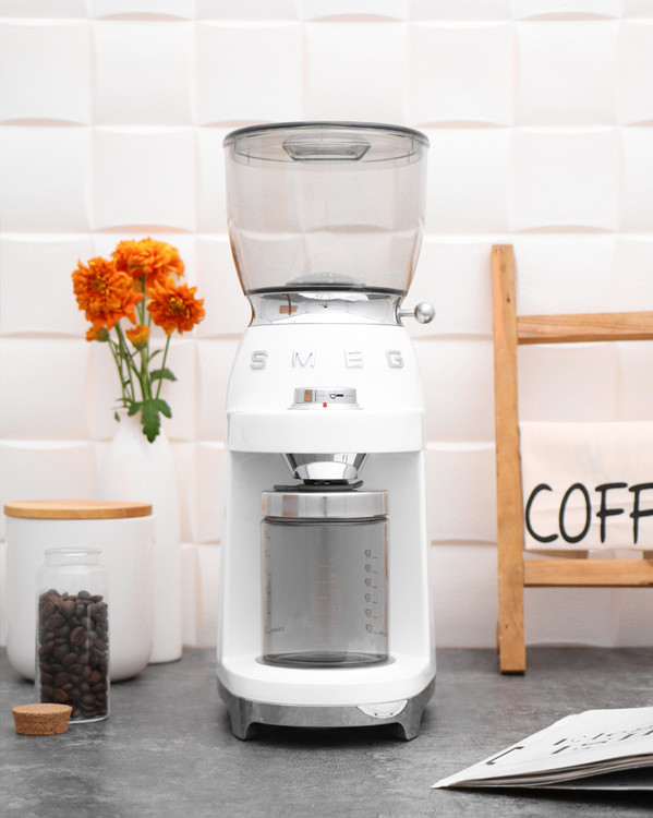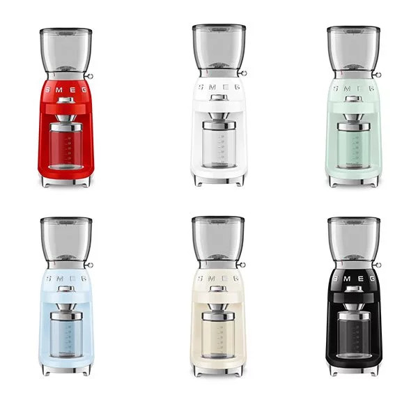 آسیاب قهوه اسمگ مدل CGF01 با طراحی شیک و لوکس خود در رنگ شاد و متنوع سفید، کرم، قرمز، آبی پاستیلی و مشکی تولید و عرضه می شود تا سلیقه های گوناگون را راضی نگه دارد.