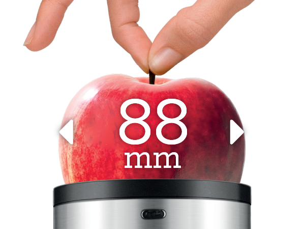 در قسمت بالای این آبمیوه گیری لوله استوانه ای شکل بزرگ طراحی شده که میوه ها و سبزیجات را می توان از آن وارد دستگاه کرد. اندازه دهانه ورودی میوه ها 88 میلی متر بوده که بسیاری از میوه ها و سبزیجات را می توان بدون برش آبگیری کرد.
