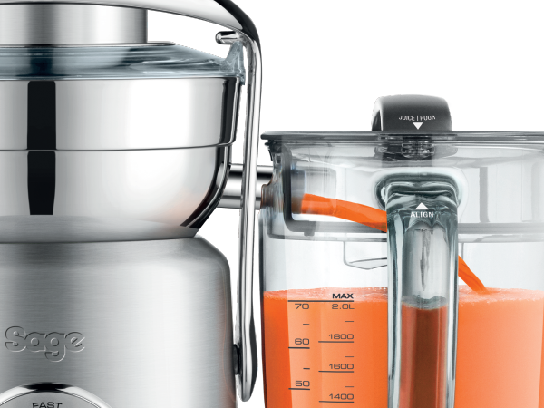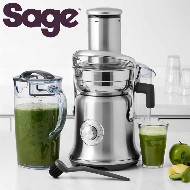 آبمیوه گیری سیج مدل SJE830 با موتور قدرتمند 1500 وات، قابلیت تنظیم سرعت و دهانه ورودی 88 میلی متر می تواند پنج برابر سریعتر از آبمیوه گیری پرس سرد، آب میوه ها را بگیرد.