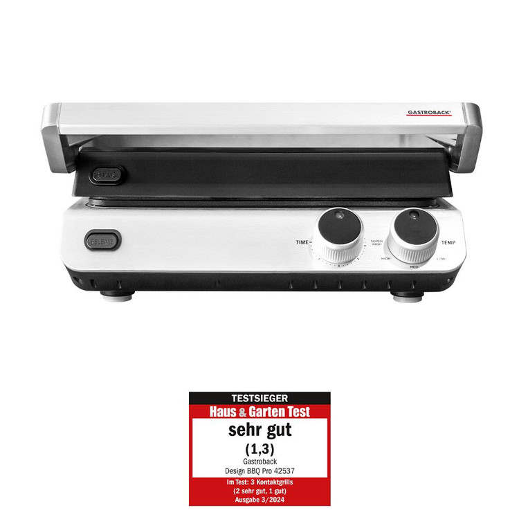 گریل باربیکیو gastroback 42537 از نوع رومیزی، با طراحی بسیار زیبا و ابعاد جمع و جور جای آن در هر آشپزخانه و حیاطی خالی است. این مدل دارای 2 صفحه است که کف آن از نوع تخت (صاف) و صفحه بالایی از نوع شیاردار می باشد.