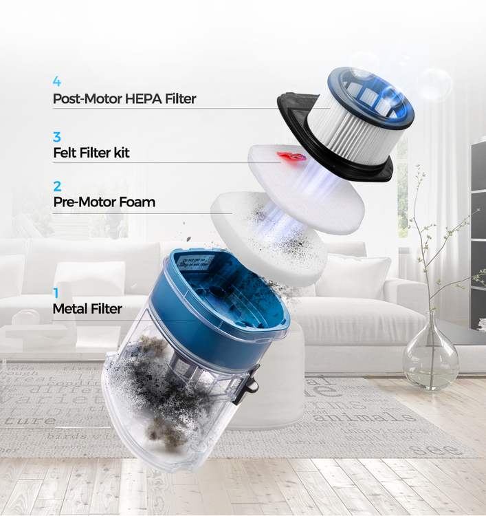 به لطف سیستم فیلتراسیون ضد حساسیت HEPA گرد و غبار، ذرات ریز و مواد حساسیت زا را در داخل جاروبرقی به دام بیندازید تا هوای خروجی تمیزتر باشد. این فیلتر قابل شستشو می باشد. شارژدهی عالی این محصول موجب شده تا مکان های زیادی را به راحتی و بدون وقفه در کار، جارو بکشید. این مدل بعد از حدود 3.5 ساعت شارژ شدن تا 40 دقیقه کارکرد مداوم را پاسخگو می باشد. این باتری لیتیوم یون با قابلیت جدا شدن را می توان در داخل یا خارج از دستگاه شارژ کرد.