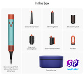 | اقلام همراه | سری Fast dryer / سری مخروطی Conical Airwrap barrel / سری 40میلیمتری Airwrap Long baller / سری Dryer+Flyaway smoother / سری Soft smoothing brush / سری Large round volumizing brush/ برس تمیز کننده فیلتر / کیف جیر مخصوص Dyson |