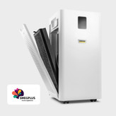 شرکت سازنده برای این مدل سیستم فیلتر دوگانه فیلتر باکیفیت H13 و فیلتر کربن فعال در نظر گرفته است. فیلتر H13 عوامل بیماری زا، آلرژن ها و آئروسل ها و جذب بوها و بخارات شیمیایی را به خوبی جذاب کرده و اجازه نمی دهد در محیط پخش شوند. فیلتر دستگاه آنقدر دقیق عمل می کند که با ارائه راندمان 99.95 درصدی ذرات بسیار ریز در حد 0.3 میکرومتر را به دام می اندازد. در نتیجه خیالتان از بابت هوایی که تنفس می کنید راحت بوده و با توجه به آلودگی اخیر هوا در شهرها، وجود این دستگاه در محیط زندگی و کار برای کودکان، افراد سالخورده و بیماران ریوی بسیار ضروری است.