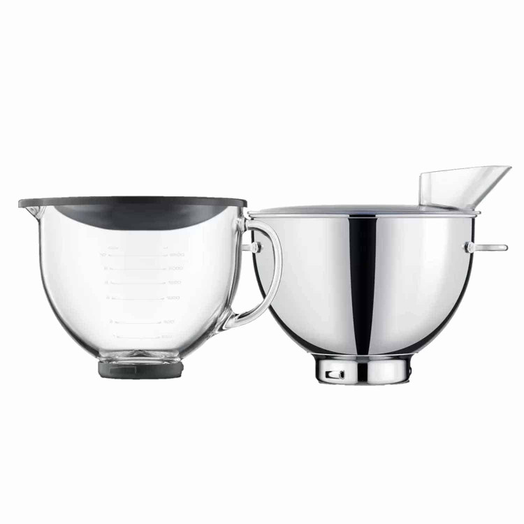 قدرت دستگاه: 1200 وات/ تنظیمات سرعت: 12 حالت/ ظرفیت کاسه استیل: 3.8 لیتر/ ظرفیت کاسه شیشهای: 4.7 لیتر/ دارای 2 کاسه استیل و شیشهای/ دارای سری خمیرزن، فوم زن، بالونی و تخت/ مجهز به سیستم ضدچکه/ مجهز به سیستم تشخیص وزن/ دارای درپوش کاسه/ دارای نمایشگر